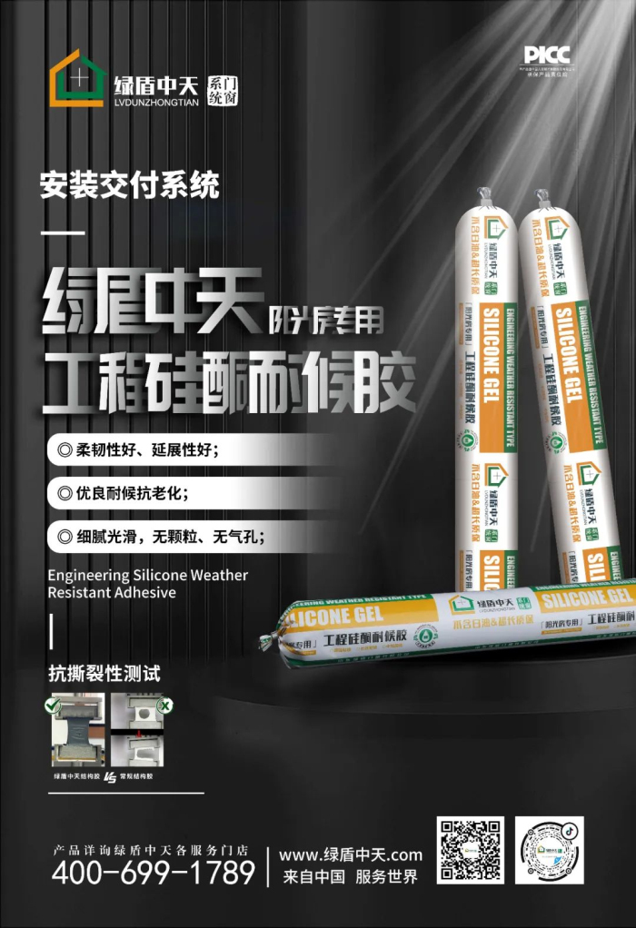 綠盾中天門(mén)窗針對這一環(huán)節將安裝交付標準化、規范化、數據化整合,推出了綠盾中天安裝交付系統。本期小編帶大家走進(jìn)綠盾中天安裝交付系統——綠盾中天陽(yáng)光房專(zhuān)用工程硅酮耐候膠。